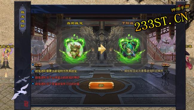 战宠属性随主人提升,资质还能洗练优化,消耗可乐、大鸡腿等材料升级战宠,60级后可能变异,资质上限飙升,还能进阶,这简直就是“战宠养成计划”啊!