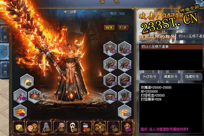 **称号** :增加大量血倍属性,并有专属地图,提升称号是提升实力的重要途径。